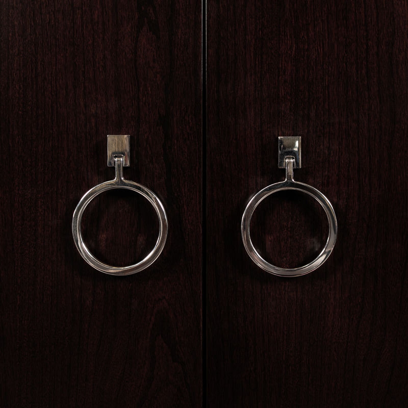 Каркас — массив дерева и высококачественная МДФ высокой плотности, отделка — натуральный шпон вишни. Все выдвижные ящики снабжены направляющими. Ручки хромированные.