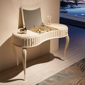 Изящный туалетный столик от итальянского бренда Fratelli Barri на объемных изогнутых ножках и с модным рифленым фасадом. Модель выполнена в стиле неоклассика с оттенком ар-деко. Форма столика "фасоль".