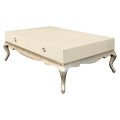 Отделка корпуса - перламутровый кремовый лак. Высокие гнутые ножки в отделке серебряное напыление, покрытое лаком.