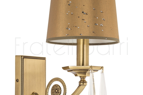 Элегантное бра выполнено в классическом стиле. Витое основание декорировано подвесками из хрусталя Asfour и дополнено нежным абажуром. Функциональная и изящная модель станет достойным дополнением интерьера. Рассчитано на одну лампу.