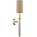 Элегантное бра выполнено в современном стиле. Латунное основание декорировано стеклянной вставкой и дополнено нежным абажуром. Функциональная и изящная модель станет достойным дополнением интерьера. Рассчитано на одну лампу.