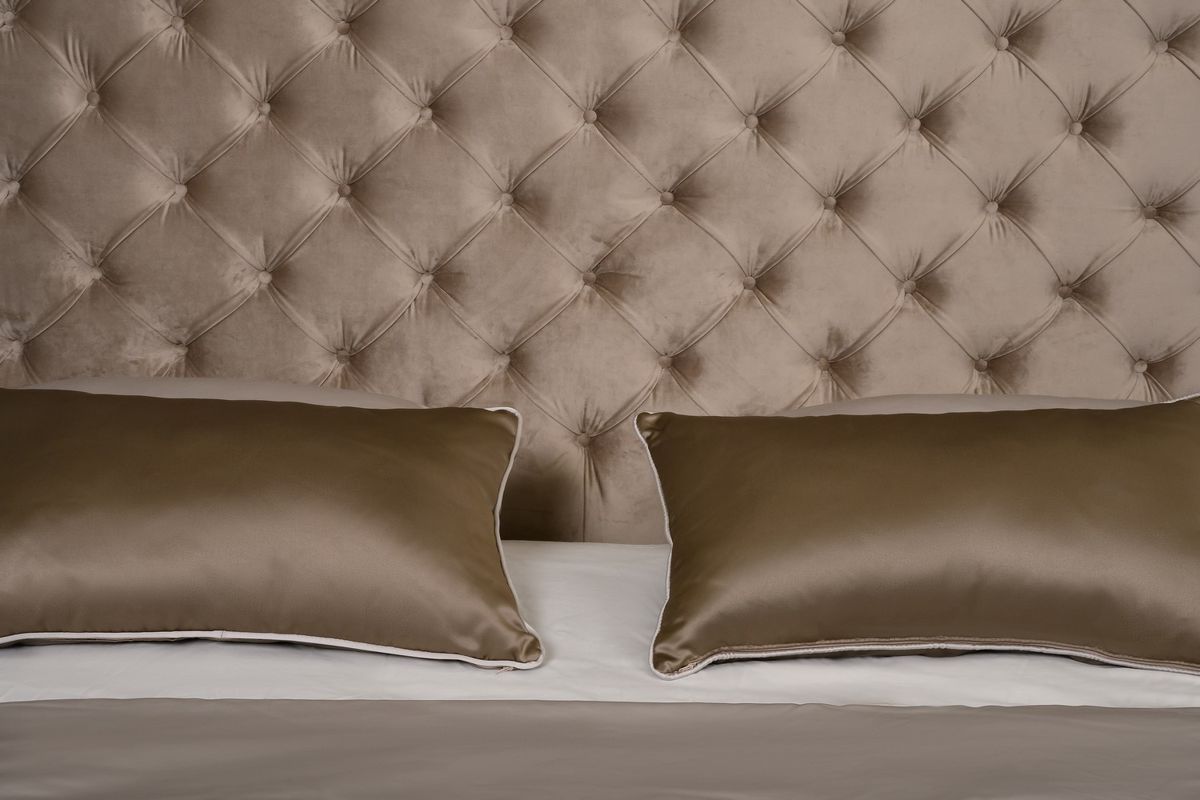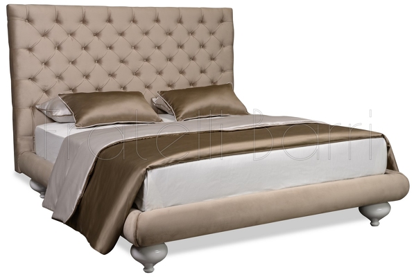 Эксклюзивная двуспальная кровать российского производства выполнена в стиле современного ар деко. Высокое изголовье украшает стежкой "капитоне".