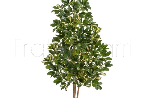 Шеффлера натуральная пёстрая. Дерево имеет необычные крупные структурные листья. Цвет - желто-зеленый. Изготовлен в Бельгии. Листва - высококачественный полимер. Ствол - натуральное дерево. 1081 листов. Перевозится в транспортировочном кашпо, указанное на фото.