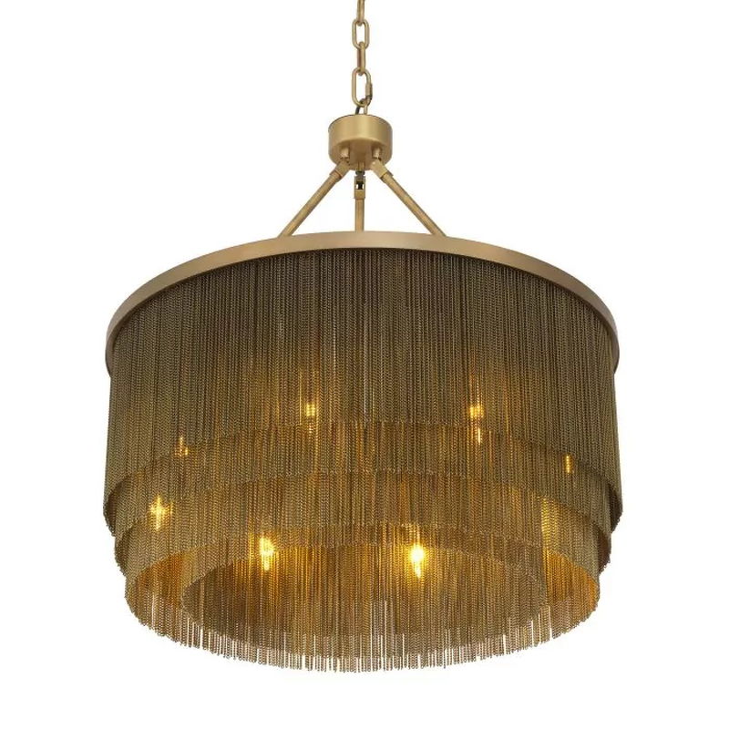 Дополните свой интерьер элегантной 4-ярусной люстрой. Эта современная интерпретация дизайна в стиле ар-деко создает приятное освещение. Металлическое основание дополнено четырьмя ярусами тонких цепочек.